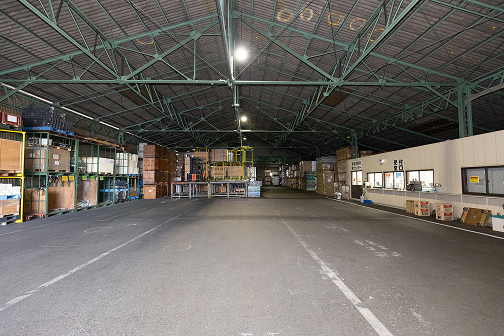 弊社最大の屋内型敷地面積約1440坪の倉庫です。取扱い貨物は、雑貨、木材、家具、建材、部材等様々な商品を保管し、繁忙期と閑散期のお荷物の増減が発生した場合でも柔軟に御対応可能です。長尺の木材にも対応しており最大4200mmの長さの木材デバンが可能です。