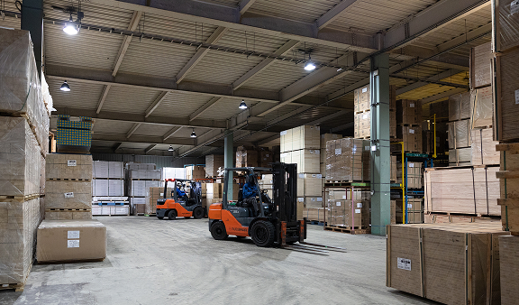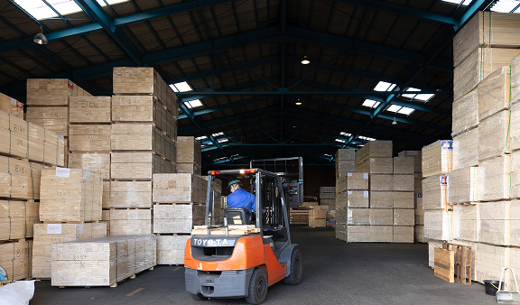 敷地面積約1050坪(屋外荷捌き310坪/倉庫面積740坪)にて、木材のデバン・入出荷・保管・配送だけでなく現場搬入分のピッキング及び梱包など物流加工にも対応し、WMSによる管理を徹底しています。お客様自身で仕入れた商品を検品作業も承りますので、ぜひお気軽にお申し付けください。又、現場搬入分はバンドル単位ではなくピース単位での出荷がメインとなる為、弊社独自の梱包によって、 積載効率やサイズなどを組み合わせてトラック台数を効率的に運用する様努めています。